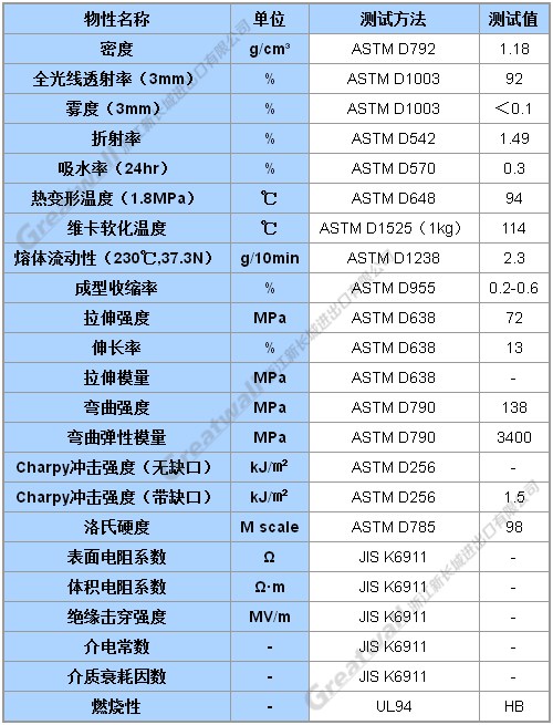 通用级PMMA,出色的耐热性能,良好的机械强度,高表面硬度,适用于成型一般透明部件